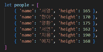 - 형식: let person = {'name:철수', 'age:30', 'height:180'};