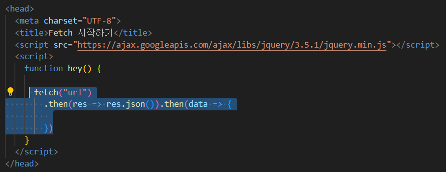 (1) fetch 연습! button 에 onclick = "hey()" 함수 지정해주기