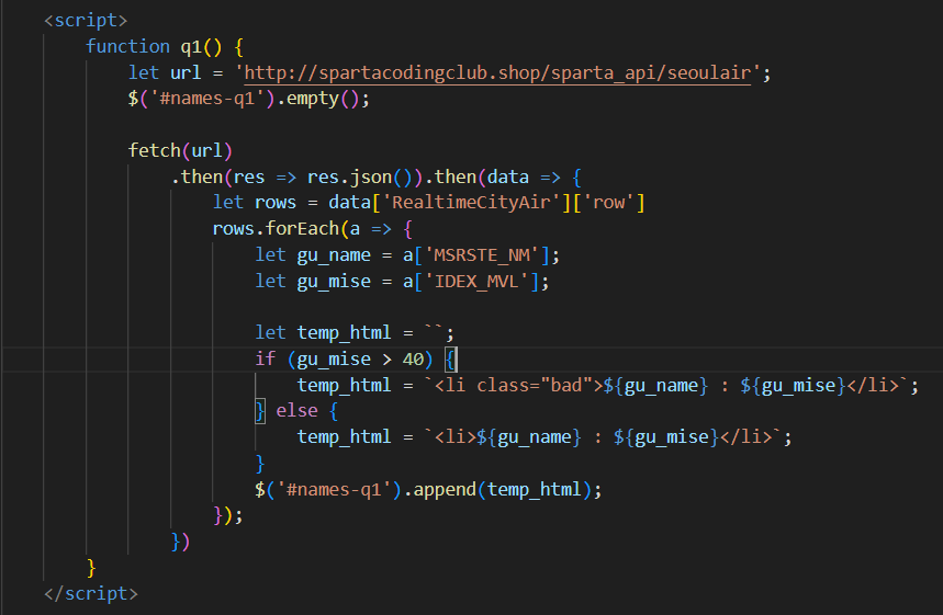 (3) gu_mise의 값에 따른 temp_html에 if문 작성