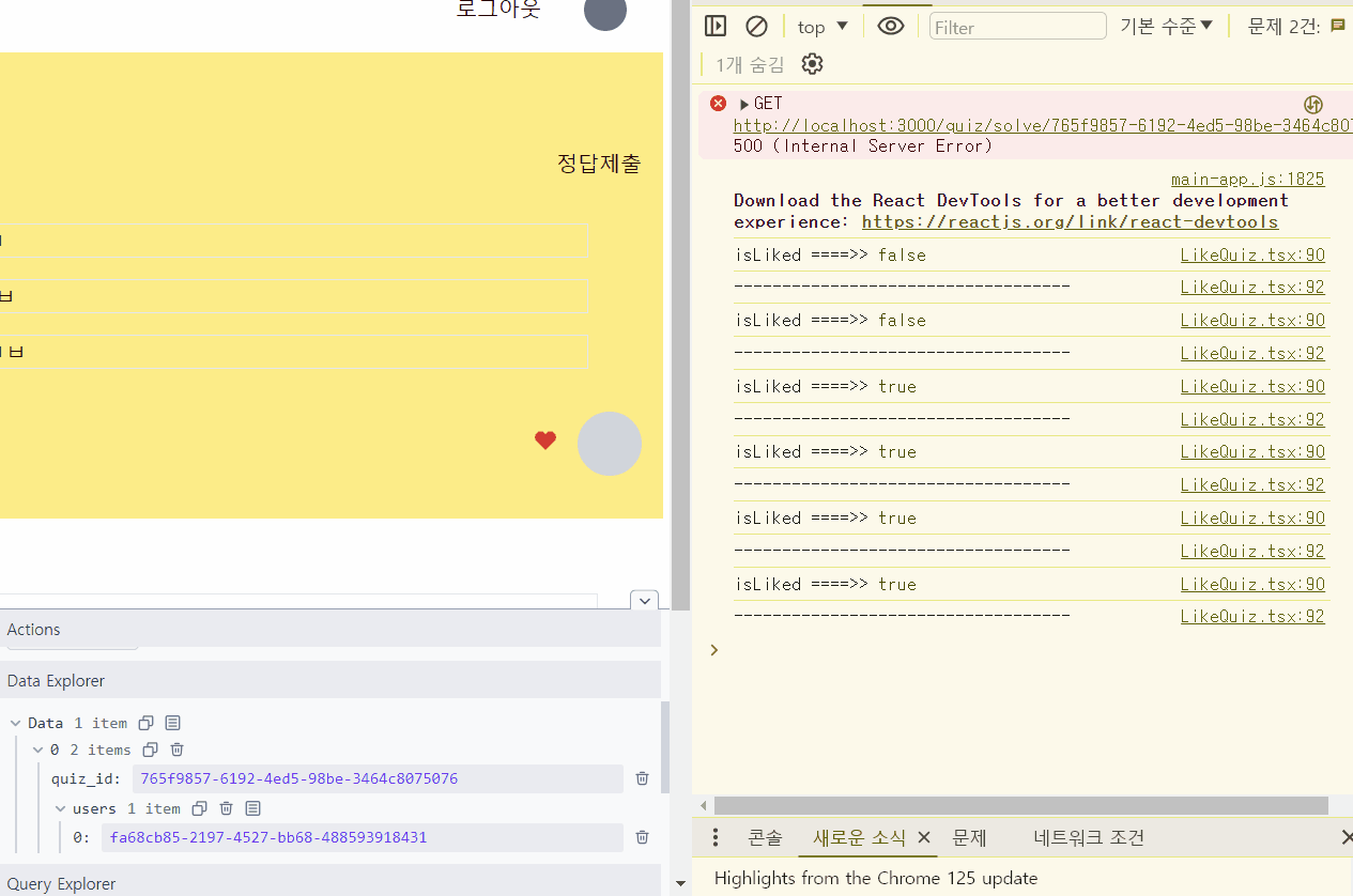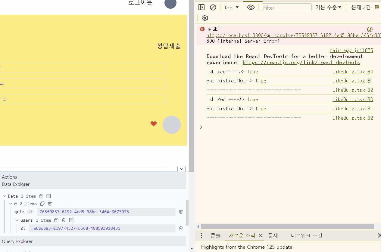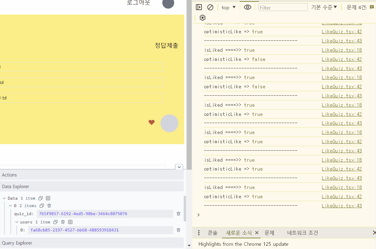 setIsLiked((prev) => !prev); ---------> submitQuizLike ์ ์ ๋๊ด์ ์