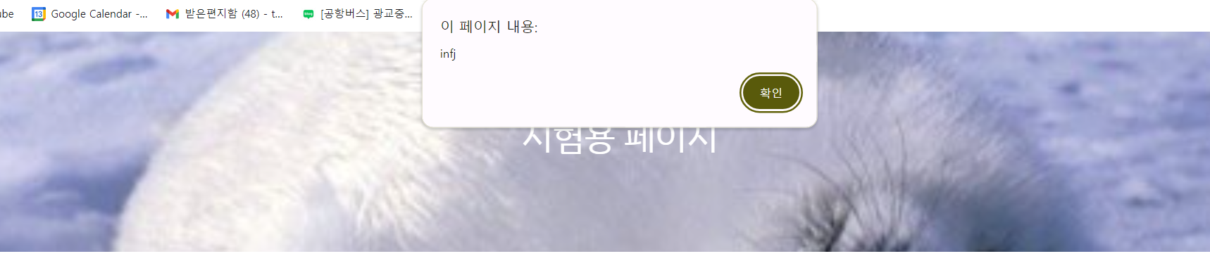 alert 창이 처음에는 infj라고 값이 잘 나오는데